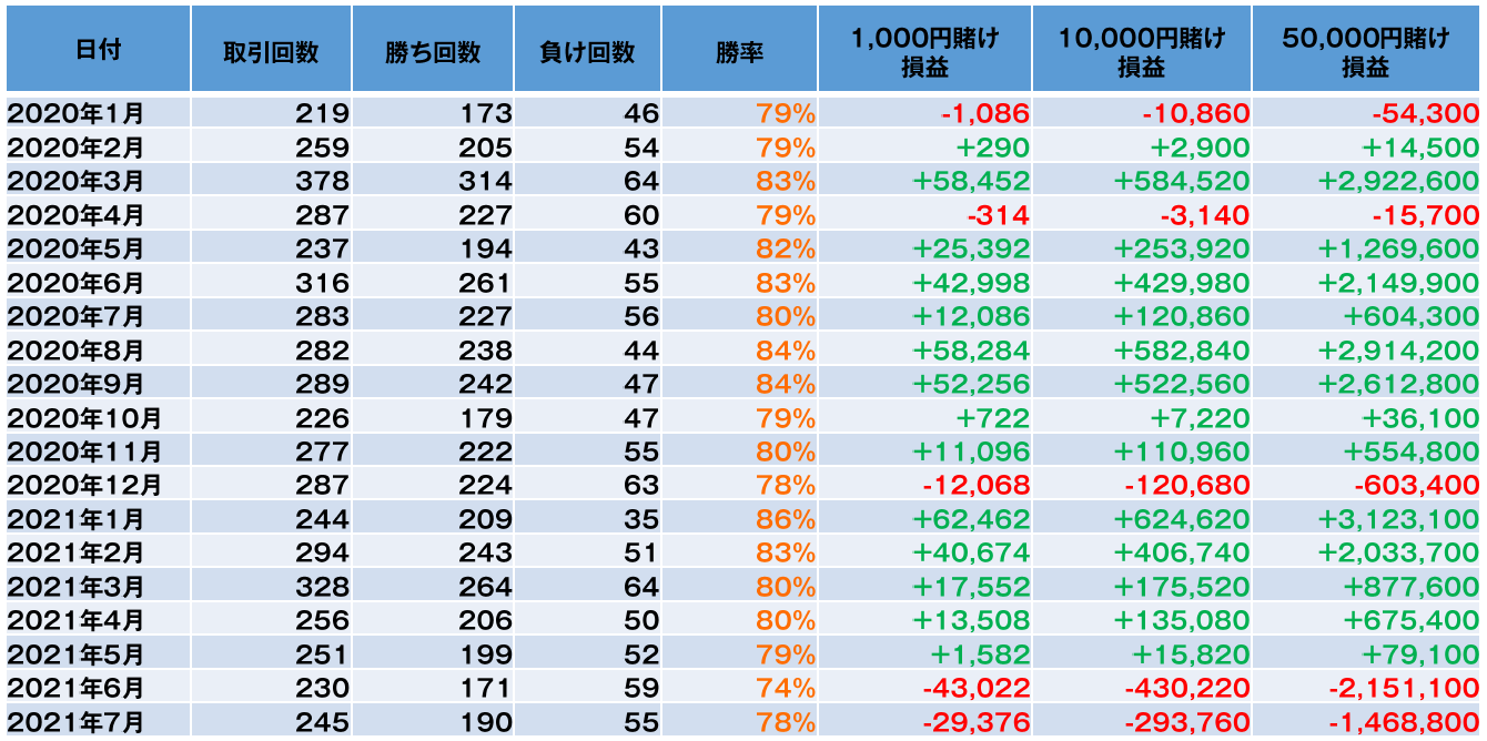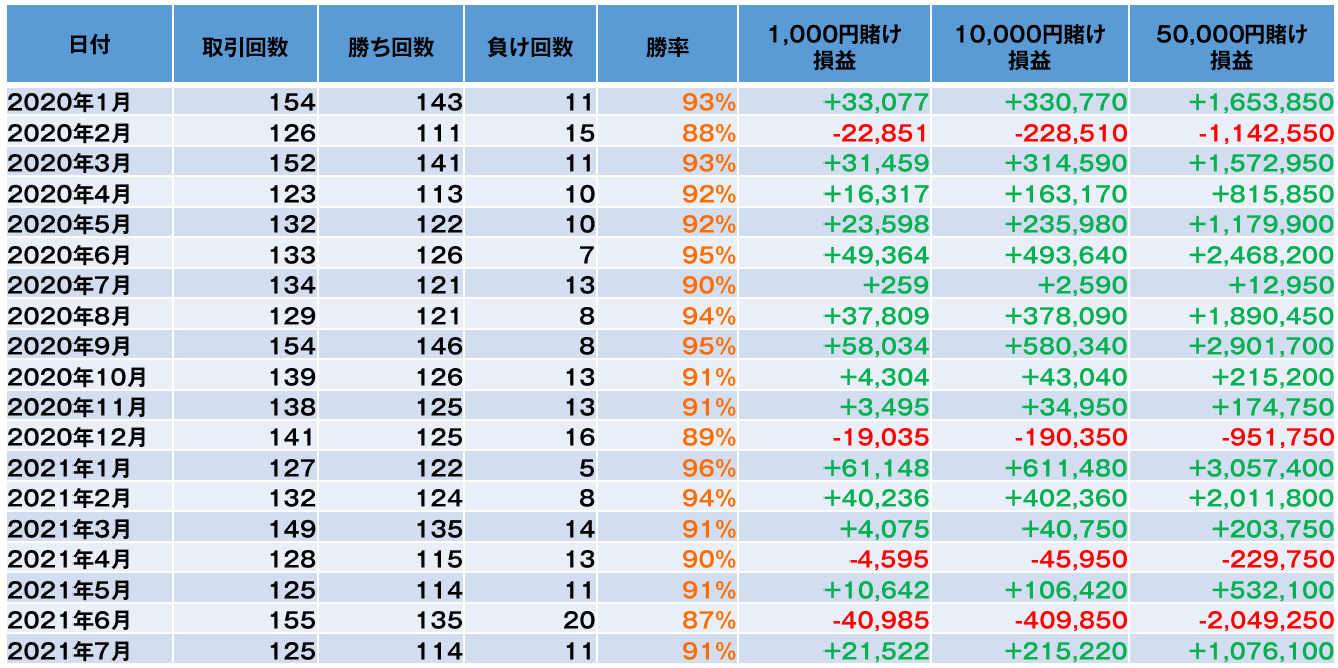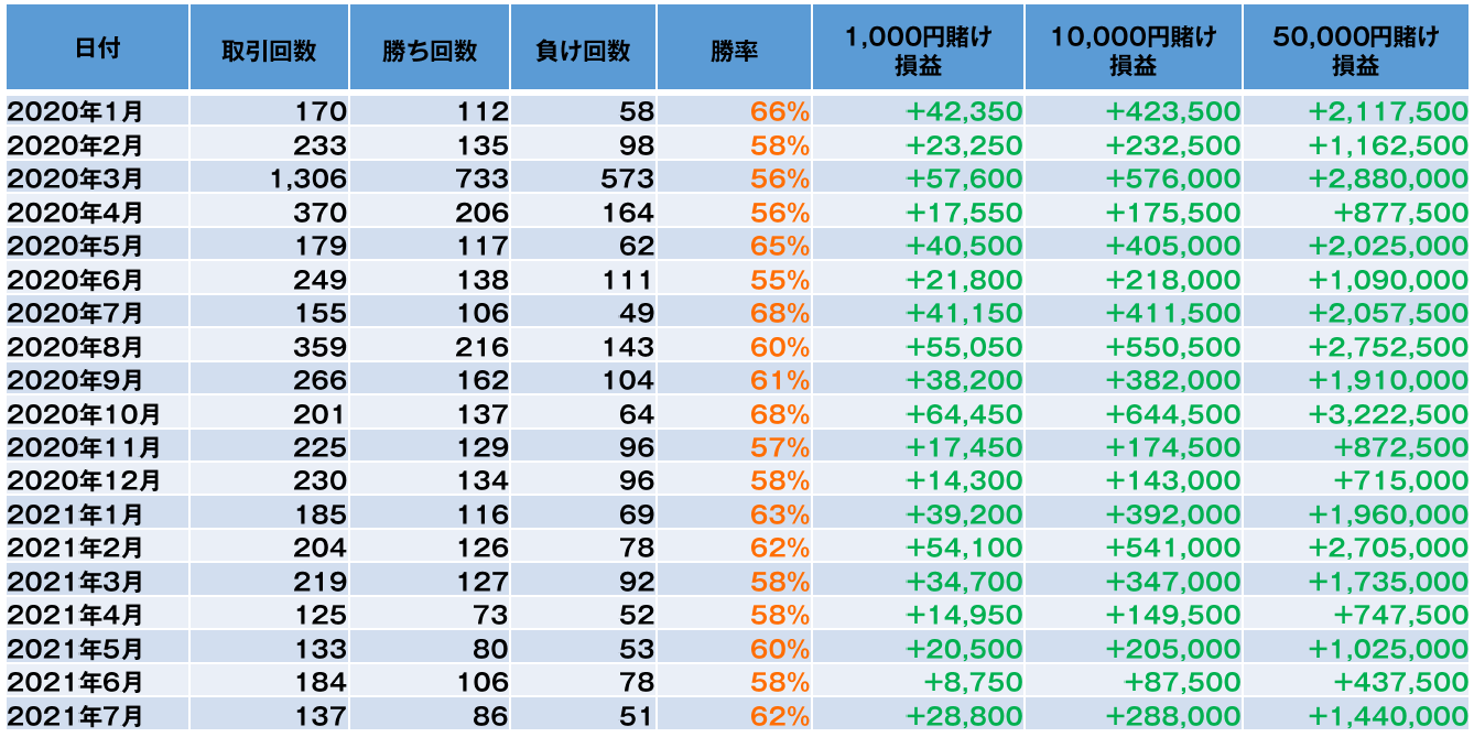 【Aシステム】月単位の成績 (19ヶ月連続プラス成績)